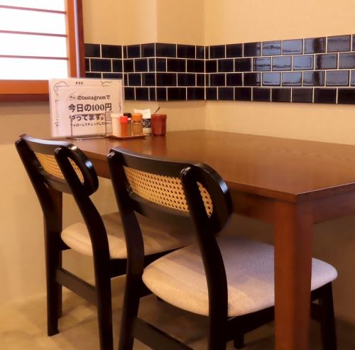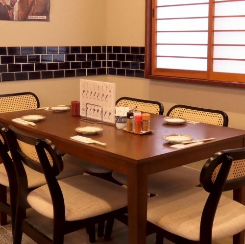 落ち着きのある広いテーブル席は6名様までご利用可。仲間や家族と、ちょっとしたお集まりに最適です。